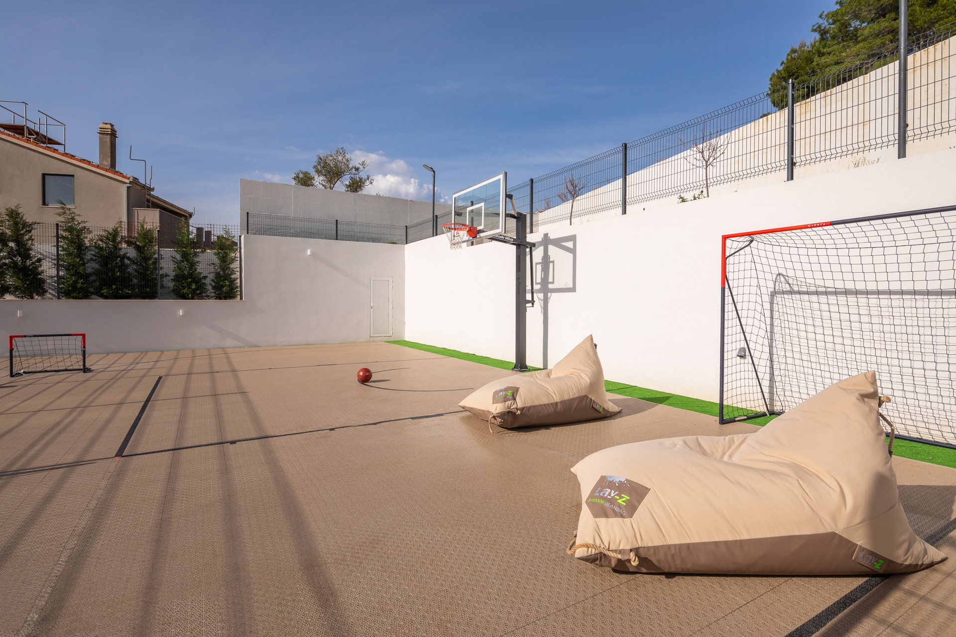 The villa includes two swimming pools (indoor heated and outdoor), a private spa and sauna, a fully equipped gym, and exclusive sports facilities, including a basketball and futsal court. Close to beaches, restaurants, golf courses, and island connections, this property represents a rare opportunity for luxury living or a high-value real estate investment on the Croatian coast.