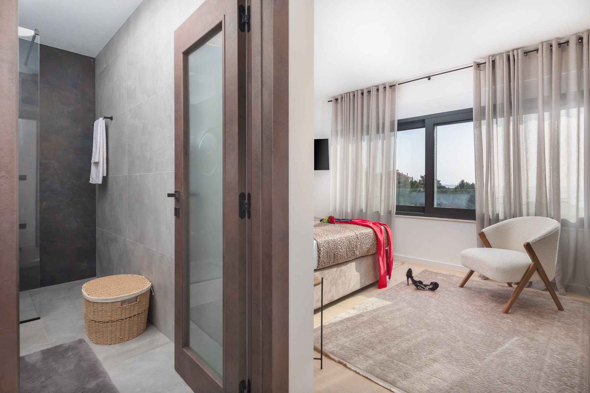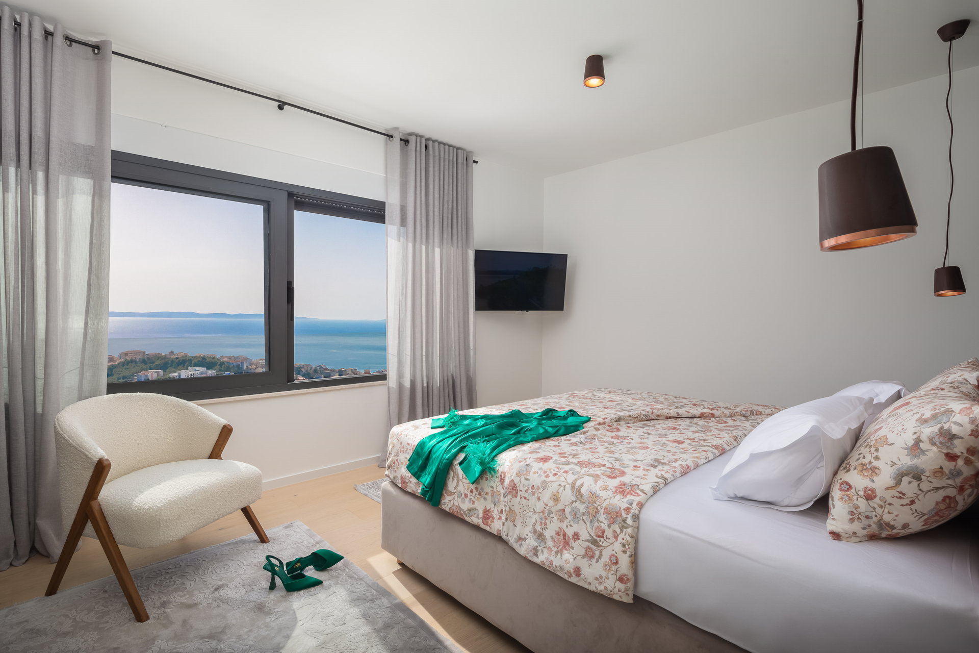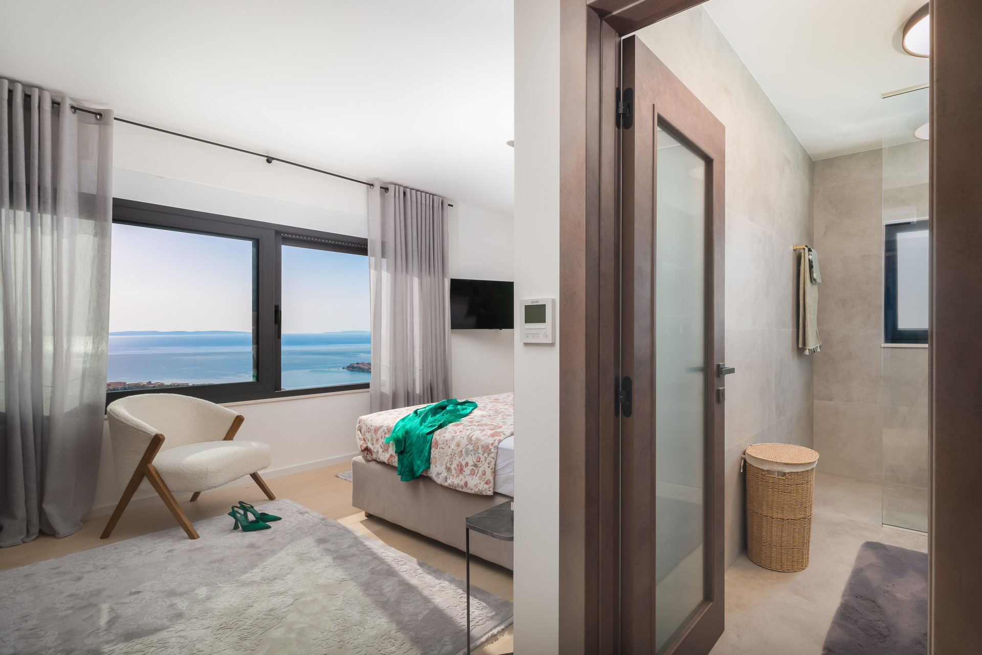 Bedroom 2 - king-size bed, en-suite bathroom, sea view