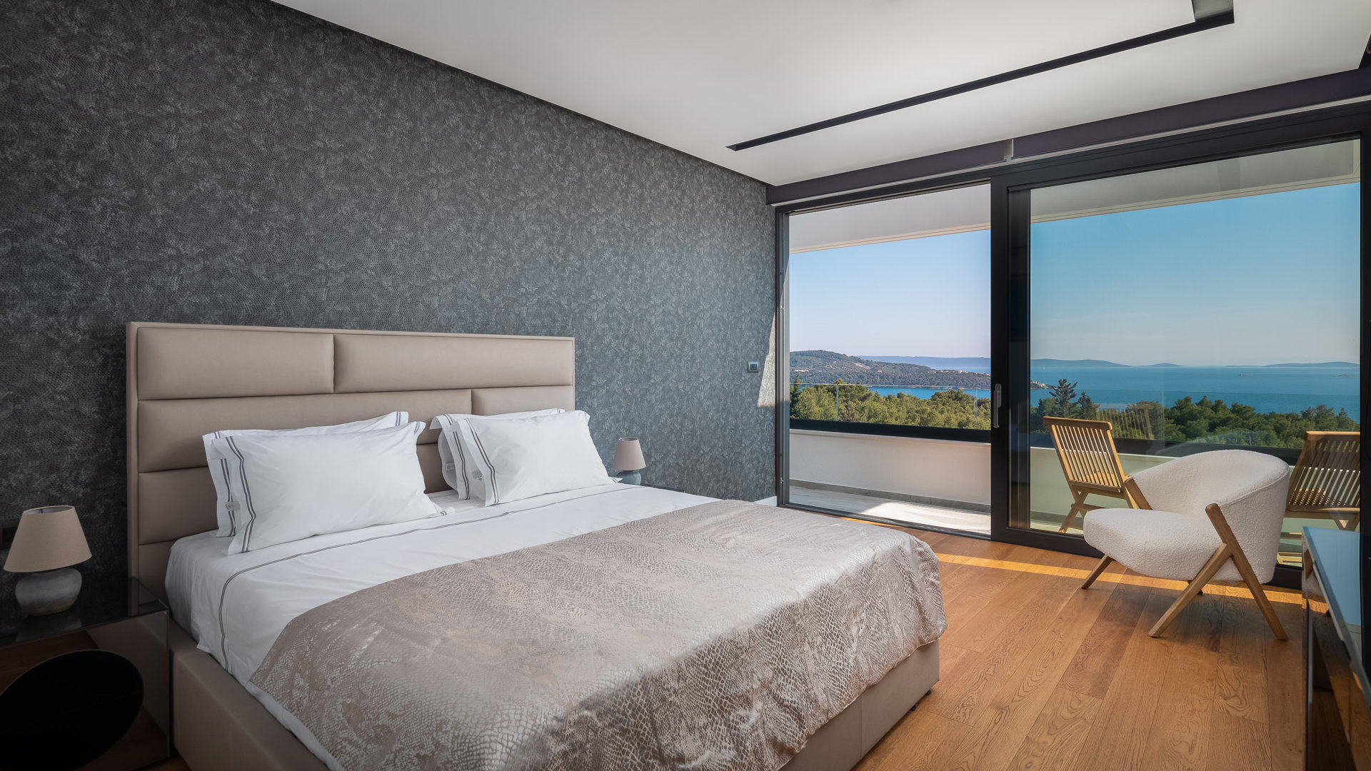 Bedroom 1 - king-size bed, en-suite bathroom, balcony, sea view