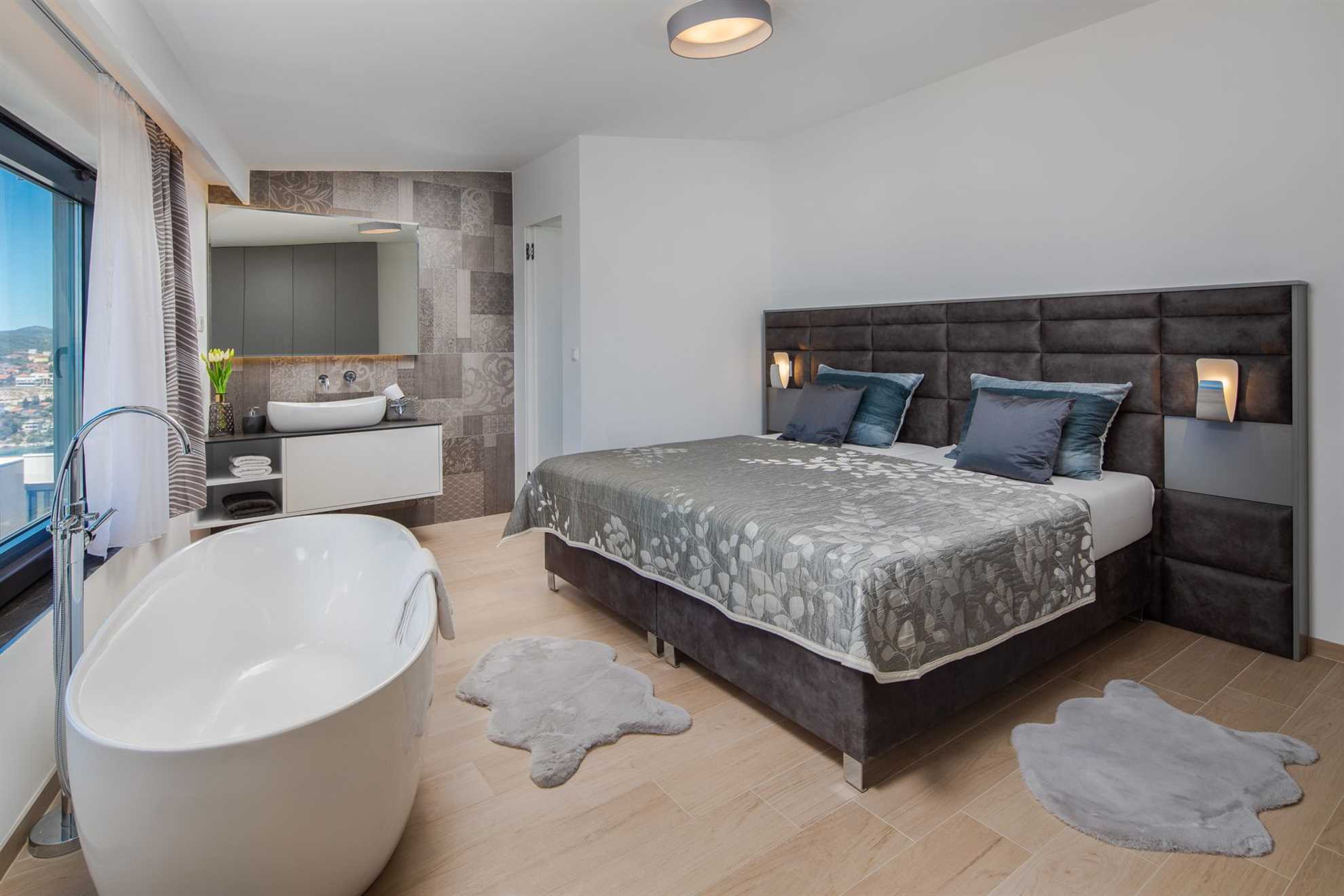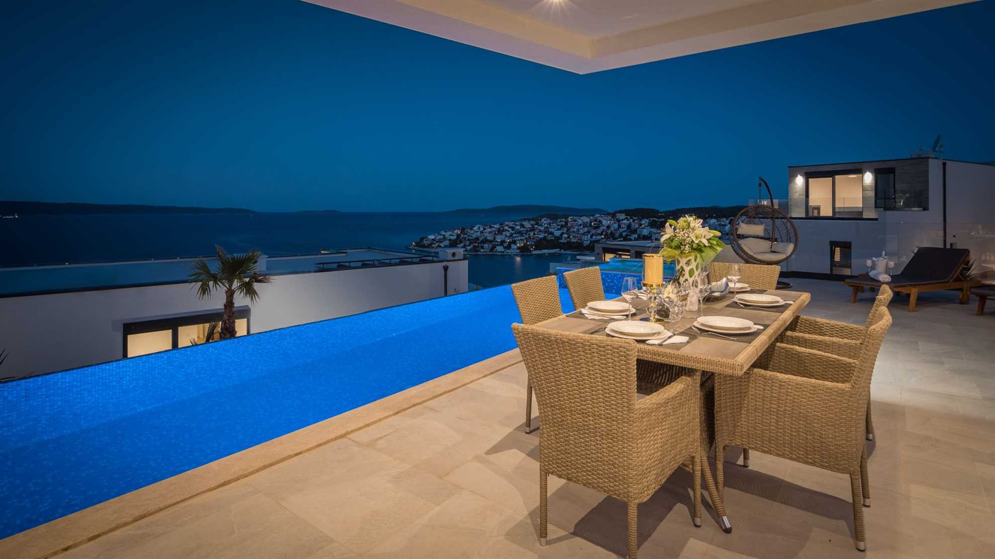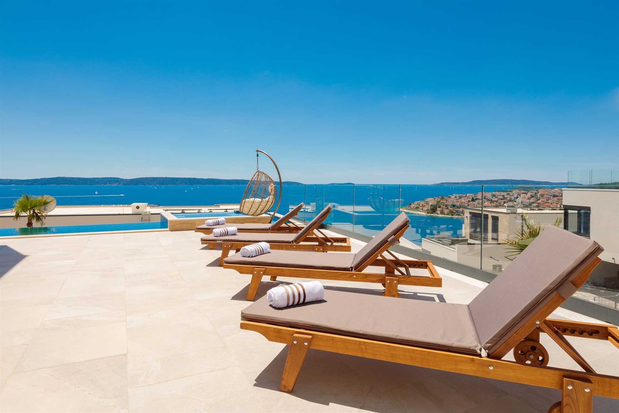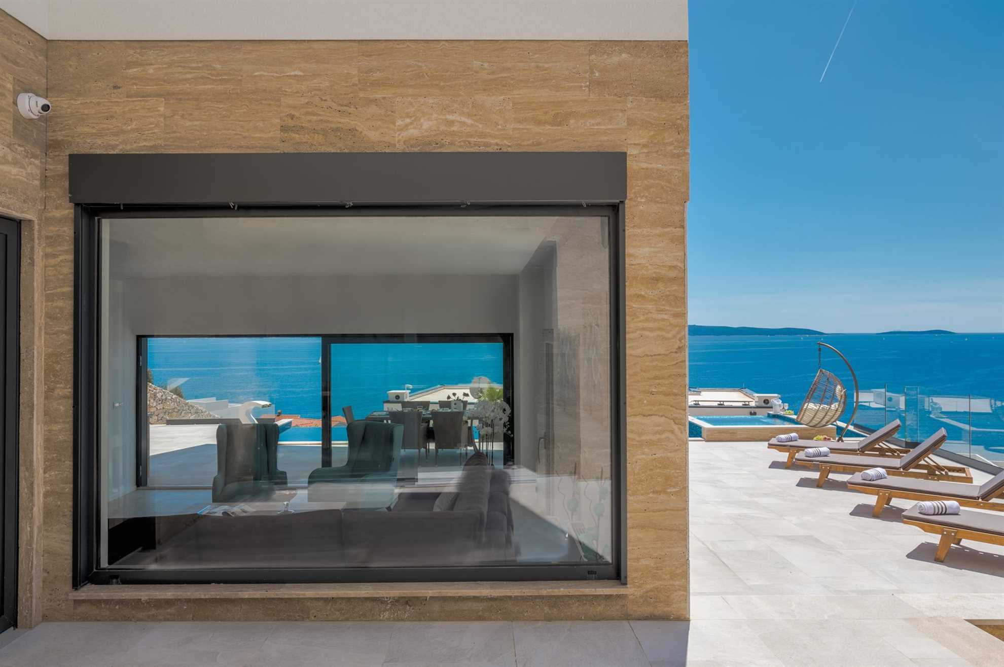 Situated on a hillside and facing south, the luxury villa Gold Pearl with pool provides you with an amazing view of the sea and nearby islets Solta and Drvenik.